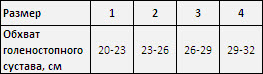 Таблица размеров