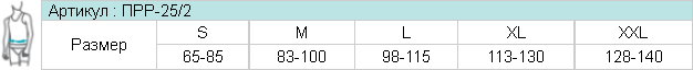 Бандаж Экотен поясничный высота 25см ПРР-25/2 ЭКОТЕН Описание Бандаж поясничный ЭКОТЕН высота 25см арт.ПРР-25/2 высота 25 см 6 металлических ребер жесткости для размеров M, L, XL, XXL (4 центральных - моделируемые) 4 ребра жесткости для размера S (2 центральных - моделируемые) воздухопроницаемые влагоотводящие материалы Показания к применению радикулит, люмбаго, люмбалгия боли в пояснице прогрессирующие: поясничный спондилез, остеоартрит позвоночника, анкилозирующий спондилоартрит межпозвонковые грыжи структурная недостаточность позвоночного столба после дискэктомии после операций на поясничном отделе позвоночника после мануальной терапии и лечебной гимнастики профилактика заболеваний позвоночника при физических и спортивных нагрузках перед применением проконсультируйтесь со специалистом Рекомендации Ручная стирка при t 30°С, стирать только с застегнутыми контактными липучками, не тереть и не выжимать изделие, сушить в расправленном виде вдали от нагревательных приборов, не гладить, не использовать растворители, отбеливатели и химическую чистку Подбор размера 006595chu /upload/iblock/c71/c719a96a07cdb009de7921b26c0740b6.jpg
