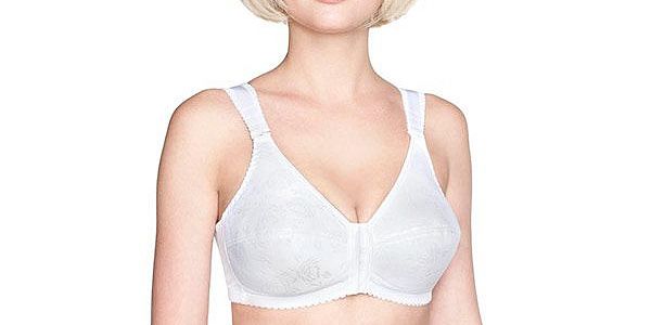 Бюстгальтер ортопедический из трикотажного полотна и кружева. Имеет высокую линию декольте. Обхват регулируется многоуровневой застёжкой сзади. Специальные кармашки для протеза находятся в обеих чашках бюстгальтера. Широкая бретель предназначена для мягкой фиксации бюстгальтера.