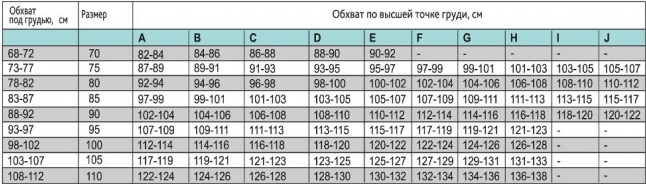 - Широкие бретели – для комфорта и поддержки груди (узкие бретели - для размеров 75 А, В, С и 80 А, В, С, для остальных размеров - бретели широкие).
