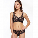 Завышенная линия декольте, высокая пройма и широкая спинка, которая у застежки становится выше, а также кружево, заходящее на бретели, скрывают возможные неровности и гарантируют безупречную посадку.