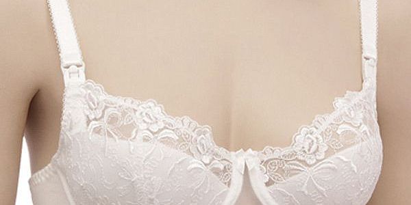 Бюстгальтер для кормящих женщин из вышивки на неэластичной сетке и эластичного полотна, на каркасах. Нижняя деталь чашки на дубляже с хлопком. Отделка – бантик.
