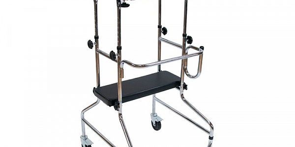 Конструкция ходунков разборная, выполнена из хромированной стали, сиденье и подлокотная опора – из искусственной кожи. Четыре колеса конструкции обеспечивают легкость передвижения без лишних усилий. Задние колеса оснащены стояночными тормозами.