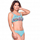 Бюстгальтер без каркасов, с втачными карманами для протеза из эластичной сетки. Бретель широкая, несъемная, с отделочной фурнитурой. Застегивается сзади на металлическую застежку. Плавки-слип с широким бочком комфортной посадки. Выполнен из эластичного трикотажного полотна с УФ фильтрами. Купальник VALERIA подарит вам чувство уверенности в себе и максимальный комфорт!