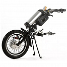 Электропривод представляет из себя 16-дюймовое моторколесо с пневматической покрышкой, оборудованное механическим дисковым тормозом, системой крепления к подножкам кресла-коляски и рулём мотоциклетного типа. Мощное диодное освещение для поездок в тёмное время суток.