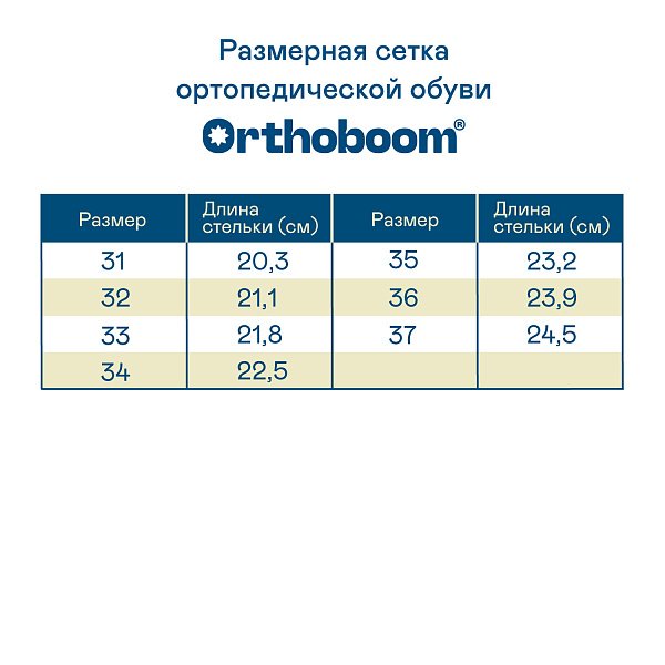 Кроссовки ортопедические Ортобум для мальчиков 33054-03 синий бархат с белым ОРТОБУМ Материал верха: натуральная кожа/текстиль Материал подклада: текстиль Материал стельки: натуральная кожа Вид застежки: 1 ремень (липучка)+ шнуровка Материал подошвы: ТЭП Детские кроссовки — модель с продуманной конструкцией и уникальным дизайном. Инновационная анатомическая колодка, обеспечивающая правильное положение стоп, сводоформирующие стельки, а также другие ортопедические элементы препятствуют развитию плоскостопия или предотвращают дальнейшую деформацию, если патология уже выявлена. За счет широкой раскрываемости модель легко надевается и снимается без дискомфорта. Для верха используется натуральная кожа/текстиль, внутри — текстиль, что гарантирует отличную износостойкость и правильный микроклимат. А нескользящая подошва снижает риск падения на любой поверхности. Лето в такой обуви пройдет с максимальным комфортом независимо от климатических условий. Показания к применению с целью профилактики для предупреждения развития патологии стопы при начальной степени плоскостопия или косолапости при сочетанной форме плоскостопия Подбор размера Определите размер по следующей последовательности:     1. Поставьте ногу на чистый лист бумаги.     2. Отметьте крайние границы ступни.     3. Измерьте расстояние между самыми удаленными точками стопы.     4. Найдите соответствующий размер в таблице размеров, расположенной ниже. 33054-03chu /upload/iblock/2e3/2e39f978529f16b4605e12dd12211f1b.jpg