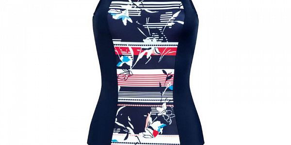Несмотря на строгие прямые линии, модель не смотрится скромно - она обладает своим шармом и интересными деталями. Купальник имеет высокий квадратный вырез декольте, который прикрывает прооперированные зоны в области груди. В лиф купальника вшиты чашечки с карманами, предназначенными для удержания протеза. Подобная конструкция полностью исключает их смещение. Мягкие чашечки хорошо поддерживают грудь и протез, корректируя именно те области, которым это нужно.