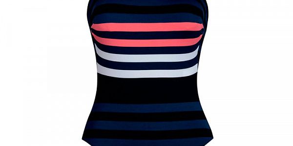 В модном купальнике Вы можете чувствовать себя уверенно во время занятий водными видами спорта. Купальники отличаются завышенным декольте для надежной фиксации; завышенной проймой для исключительного комфорта. Кармашки для протеза с обеих сторон имеют потайное боковое отверстие. Купальник очаровывает спортивным полосатым видом и узкими регулируемыми двойными лямками. Обворожительное расположение полос, мягкие чашки и специальная подкладка создают фантастический силуэт.