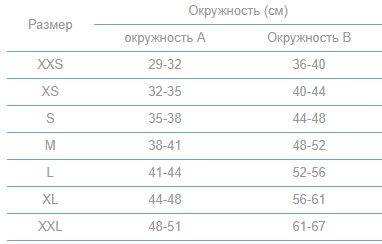 Размер коленного ортеза Genu Carezza Patella Stabilizer, арт.8360 выбирают в соответствии с приведенной ниже схемой.