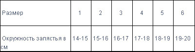 Таблица размеров
