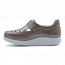 Комфортные открытые туфли увеличенной полноты с крупной перфорацией, отличаются улучшенным воздухообменом и терморегуляцией, не давая стопе перегреваться, чем обеспечивают удобство и комфорт. Велкро надежно фиксирует обувь на ноге и помогает избежать сдавливания. Сложная ортопедическая стелька с метатарзальным валиком снижает риск развития продольного и поперечного плоскостопия. Колодка учитывает особенности проблемной стопы и имеет дополнительное пространство в области пальцев. Туфли имеют легкую ригидную подошву с перекатом, которая поглощает ударные нагрузки при ходьбе, снижает риск появления травм и микротрещин.