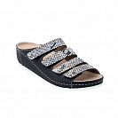 Сабо Luomma повседневные женские LM-703N.036B черные LUOMMA Описание Старое наименование артикула: LM-503N.036B Женская обувь LM Orthopedic предназначена для повышенного комфорта и здоровья ног в процессе ходьбы на улице в теплое время года и для ношения в помещениях круглый год. Особая конструкция всех узлов (верх обуви, специальная подошва, съемная ортопедическая стелька) направлена на снижение болевых ощущений в области косточки большого пальца, уменьшения давления на стопу и отеков, повышение равновесия, устойчивости при ходьбе и поглощения ударной нагрузки на пятку и коленные суставы. Гарантированный комфорт Вы почувствуете с первого шага. Платформа — 2 см Каблук — 4 см Полнота — средняя Показания к применению Болевые ощущения в ногах при ходьбе Поддержка и формирование естественного свода стоп, профилактика плоскостопия Плоскостопие продольное, поперечное, комбинированное 1, 2 степени Синдром усталых ног Избыточный вес Беременность Вальгусная деформация первого пальца Молоткообразная деформация пальцев стоп Варикоз, профилактика венозных болезней и отеков ног Болевые ощущения в коленных, тазобедренных суставах и позвоночнике Предохранение от натоптышей, твердых мозолей и пяточных шпор Нагрузка на ноги более 2 часов в день Противопоказания Незаживающие мокнущие раны или язвы стопы Интенсивная боль, связанная с воспалением сустава большого пальца, требующая временного отказа от ношения обуви Синдром диабетической стопы Противопоказания могут быть изменены в зависимости от особенностей конкретного случая. В такой ситуации требуется консультация врача Инструкция по применению При выборе обуви правильно подбирайте ее по размеру и полноте с учетом индивидуальных особенностей стопы. Обувь не должна причинять Вам неприятных ощущений, стопа не должна быть сжата. В случае несоответствия размера возможна деформация обуви, расхождение швов, разрыв материала. При надевании расстегните или развяжите все застежки и отрегулируйте их по своей стопе. При эксплуатации учитывайте назначение обуви и сезонность. Данная обувь не предназначена для ношения в сырую, дождливую погоду, т. к. не является непромокаемой. Изменение цвета материала верха при попадании воды не является дефектом. При повышенной потливости ног нежелательно использовать одну и ту же пару обуви ежедневно. Необходимо дать возможность обуви просохнуть и принять первоначальную форму. Следует учитывать, что при намокании возможно окрашивание стелек или подкладки. Это не является браком. После каждой носки обувь следует очистить от пыли и грязи мягкой влажной тряпкой, губкой или щеткой с применением специальных средств обувной косметики (кремы, спреи, пропитки и т. п.). Запрещается мыть обувь в воде и сильно тереть, т. к. материалы могут утратить первоначальный внешний вид. Просушивание намокшей обуви производится при комнатной температуре. Нельзя сушить обувь на нагревательных поверхностях, вблизи огня или на батарее. При правильном уходе за обувью она прослужит Вам долго! Подбор размера LM-703N.036Bchu /upload/iblock/84c/84cc805bdd735ea091a63ed89d641311.jpg