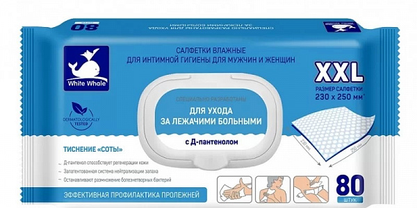 Салфетки влажные White Whale для интимной гигиены с экстрактом Каланхоэ 80 шт АВАНГАРД Салфетки влажные для интимной гигиены мужчин и женщин содержат экстракт каланхое. Салфетки специально разработаны для ухода за лежачими больными. Универсальные: для мужчин и женщин. Салфетки очищают кожу, удаляя остатки мочи и выделений, сохраняя при этом естественный баланс pH. Входящие в состав пропитывающего раствора компоненты способствуют быстрому заживлению воспалений, обладают мощным бактерицидным свойством, останавливают размножение болезнетворных бактерий, нейтрализуют запах. Они безопасны для ежедневного использования и удобны для переноски в сумочке. В упаковке 80 штук, что обеспечит достаточное количество на длительное время. Незаменимы для быстрого и удобного очищения кожи без использования воды и моющих средств Для временного устранения неприятных ощущений, очищение кожного покрова. Содержащийся в составе пропитывающего раствора аллантоин способствует быстрому заживлению воспалений Экстракт Каланхоэ обладает мощным противовоспалительным и бактерицидным свойством и применяется для профилактики опрелостей и пролежней. Д-Пантенол - способствует регенерации кожи Салфетки останавливают размножение болезнетворных бактерий Запатентованная система нейтрализации запаха . Состав Нетканое полотно, пропитывающий лосьон. Состав пропитывающего лосьона: вода деминерализованная, цетеарил изононаноат, цетеарет-20, цетилстеарил, глицерин, глицерил стеарат, цетил пальмитат, цетеарет-12, пропиленгликоль, алкилполиглюкозид, феноксиэтанол, бензоат натрия, отдушка, ЭДТА, ундециленамидопропилтримониум метосульфат, аллантоин, экстракт каланхоэ, д- пантенол. chu /upload/iblock/6cd/6cdd327ee2ba52c219044af9f9ebb0cc.jpg
