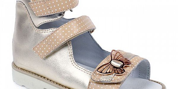 Сандали антивальгусные Ринтек для девочек 71296Z золотые RINTEK Описание Жесткие ортопедические элементы и фиксирующие липучки «велкро» обеспечивают коррекцию стопы, не ограничивая движения в голеностопном суставе: Высокий жесткий берец – с внешней и внутренней сторон удерживает стопу в области голеностопного сустава, препятствуя заваливанию. Жесткая формованная пяточная часть обуви фиксирует и корректирует тарано-пяточный сустав. Регулируемый объем обуви предотвращает «распластывание» переднего отдела стопы. Высота берца позволяет использовать индивидуальные корригирующие элементы, коски, пронаторы, супинаторы и компенсировать укорочение нижней конечности до 1,5 см. Каблук Томаса в комплексе с унифицированной колодкой обеспечивает инверсионное вращение стоп, эффект можно увидеть во время примерки обуви. Вкладные съемные ортопедические стельки по рекомендации врача можно заменить на индивидуально изготовленные стельки-супинаторы. Показания Обувь показана при: плоско-вальгусная деформация стоп 2 и 3 степени. детской приведенной стопе 2 и 3 степени. в качестве первого этапа коррекции среднетяжелой и тяжелой степени косолапости. при легких формах ДЦП. Особенности Материал верха – натуральная кожа/текстиль. Материал внутренней части – натуральная кожа. Высокий жесткий берец. Задник – усиленный жесткий с поддержкой внутренней стороны стопы. Застежки – три застежки Велькро (липучки). Эластичная фиксация без ограничения движения. Открытый мыс. Ортопедический каблук Томаса. Перекат подошвы в носочной части - способствует формированию правильного шага. Стелька – съемная с супинатором. Необходимо вложение ортопедических стелек.  Таблица размеров 71296Zchu /upload/iblock/9c7/9c7e2adfb7ba6fd02a5be998d34b1a17.jpg