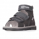 Сандалии Bottilini для мальчиков SO-157(10) темно-серые BOTTILINI Обувь ТМ "Воttilini" - это качественная профилактическая обувь для детей. Это обувь, конструкция которой разработана с учетом предупреждения развития патологических отклонений в стопе ребенка, т.е. это обувь, помогающая развиваться детской стопе. Изготавливается из натуральной кожи определенных сортов, кожа не содержит вредных веществ, пластична, обеспечивает хорошую микроциркуляцию воздуха и отводит испарение влаги. При производстве обуви используется эластичная, прочная подошва, с хорошими амортизационными свойствами, выполненная из высококачественного термопластика.  Обувь ТМ "Bottilini" - это жесткий задник, который обеспечивает необходимую фиксацию детской ножке  и придает устойчивость стопе; это анатомическая стелька с сводоподдерживающим элементом (супинатор средней высоты) - для правильного формирования стопы; это усиленный и просторный нос - защита от возможных травм, без скованности в движениях для ребенка. Материал верха: кожа натуральная Материал подкладки: кожа натуральная Материал стельки: кожа натуральная Наличие супинатора: есть Каблук Томаса: есть Стелька: не вынимается Материал подошвы: ТЭП Крепление: 3 липы Назначения сандалий Профилактика плоскостопия, вальгуса и других заболеваний и деформаций стопы; правильное формирование сводов стопы; Лечение начальных деформаций стопы, в том числе плоскостопия. Функциональные преимущества Анатомически правильно стабилизируют стопы, предотвращают и корректируют вальгусную и варусную установку стоп; Поддерживают биомеханику стопы и предупреждают перенапряжение, снижают риск травм мышц и связок ног; Защищают пальцы ног и предупреждают возникновение травм и деформацию пальцев стоп. Подбор размера SO-157(10)chu /upload/iblock/972/972b51d825f8c8d974fa86f1720873b9.jpg