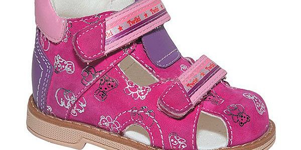Сандали ортопедические Твики для девочек TW-221 розовый/фиолетовый TWIKI Описание жесткий задник – удерживает пятку в правильном положении, стабилизирует голеностопный сустав во время ходьбы, предотвращает развитие ортопедических патологий у детей выкладка сводов (супинатор) – специальный элемент из эластичного материала, который предотвращает развитие плоскостопия, обеспечивает поддержку сводов и тренировку связочно-мышечного аппарата. Применяется в обуви, начиная только с 21 размера! ортопедический каблук «Томаса» или широкий устойчивый каблук,  продленный с внутренней стороны – исключает вращение (заваливание) стопы вовнутрь и служит для равновесия эластичная подошва – упругая, с искусственным физиологическим перекатом, правильно распределяет нагрузки на опорно-двигательный аппарат мягкий кант в области задника предотвращает натирание кожи при ежедневном длительном использовании система Shock Absorber смягчает удары в области пятки две застежки «Велкро» позволяют использовать обувь при различной полноте стопы материал — натуральная кожа, нубук подкладка — On Steam On Steam - это материал, обладающий качествами натуральной кожи и микрофибры. Это 100% дышащее микроволокно, способное впитывать воду. Функции перераспределяет нагрузку на продольные своды стоп поддерживает передний отдел стопы и удерживает пальцы в правильном положении при ходьбеудерживает пятку в анатомически правильном положении, уменьшает нагрузку на голеностопный сустав обеспечивает комфорт, равновесие и устойчивость при ходьбе уменьшает болевые ощущения при ходьбе, компенсирует ударную нагрузку на суставы ног и позвоночник снижает утомляемость ног улучшает кровоснабжение мышц голеней помогает работе мышечно-венозной помпы, улучшает отток венозной крови из нижних конечностей способствует улучшению общего самочувствия и настроения Показания к применению профилактика статических нефиксированных деформаций стоп (плоско-вальгусные стопы, продольное и комбинированное плоскостопие) период быстрого (интенсивного) роста ребенка лечение статического плоскостопия и плоско-вальгусной установки стоп состояния после перенесенных операций на нижних конечностях и стопе Противопоказания к применению Абсолютных противопоказаний не выявлено. Относительные противопоказания, требуют консультации врача: необходимость индивидуального ортезирования стопы и изготовления сложной ортопедической обуви. Применять ортопедические босоножки по назначению и под контролем врача. Рекомендации по уходу после использования обувь необходимо очистить от грязи, протерев чистой сухой тканью или щеткой для обуви хранить обувь необходимо в темном сухом помещении если обувь намокла, необходимо удалить остатки влаги сухой тканью или бумажным полотенцем, во избежание деформации обуви полезно поместить внутрь обуви бумажные салфетки, сухую ткань сушить обувь можно только естественным путем при комнатной температуре вдали от нагревательных приборов рекомендуется использовать специальные средства по уходу за кожей, нубуком согласно инструкции производителя Таблица размеров Определите размер по следующей последовательности: Поставьте ногу на чистый лист бумаги. Отметьте крайние границы ступни, положение ручки 90 градусов (у 1-го или 2-го пальца и пятки). Измерьте 