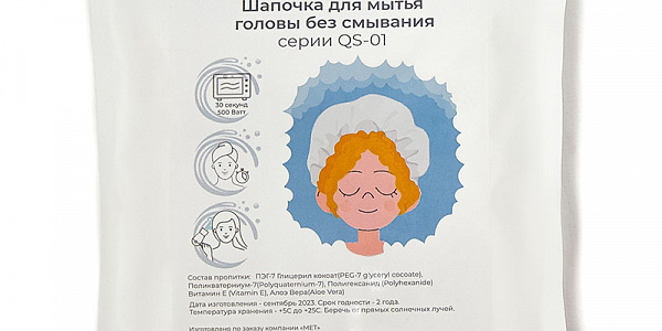 Шапочка MET для мытья головы без смывания серии QS-01 - незаменимый помощник в регулярном уходе за лежачим человеком. Не требует смывания водой. Также она пригодится каждому в дороге, в стационаре, при травмах, в роддоме, на даче, если в доме отключат воду, при дальних поездках, походах. Это идеальное решение всякий раз, когда нет возможности принять душ.