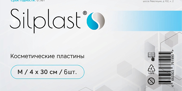 Silplast® - косметическая пластина, состоящая из тонкого силиконового материала, телесного цвета, предназначена для маскировки рубцов и других неровностей, путем приклеивания пластины в необходимом месте. Индивидуальная упаковка для каждой пластины.