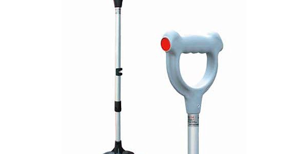Конструкция опорных ножек сконструирована чтобы не мешать людям при движении. Трость имеет регулировку высоты для опоры под руку. Средство реабилитации снабжено светоотражающими элементами.